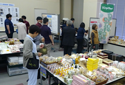 <障がい者手作り商品販売会> - 障がいのある方が作られた商品を、社内の会議室で販売する「障がい者手作り商品販売会」を開催しています。お買い物を通じた楽しい啓発イベントとして、毎年恒例となっています。