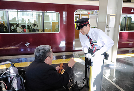 - 駅係員による乗降時のサポートについてウェブで事前に予約できるサービスを2025年4月から開始しました。阪急電鉄線内の87駅での乗降時が対象で、予約の際、ウェブ上で乗車予定の電車やサポート内容を入力することで、その情報が駅係員専用のアプリに自動的に連携されます。駅係員の派遣やサポートの準備等を円滑に行えることから、お客様により安心してご乗車いただけるようになりました。