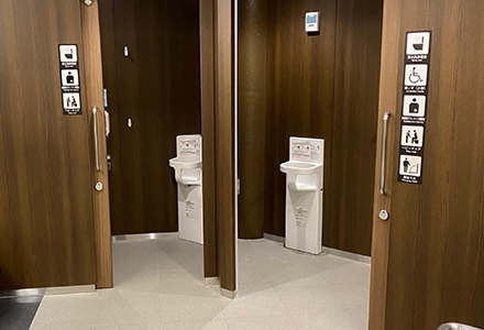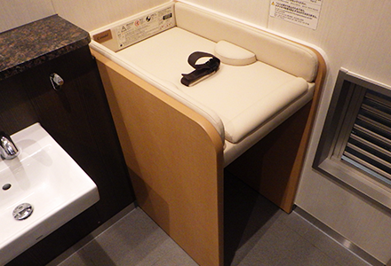 - お子様と、お子様をお連れのお客様に対しても快適にご利用いただくため、阪急電鉄および阪神電気鉄道では、駅のトイレに「ベビーチェア」、「ベビーベッド(おむつ交換台)」の設置を進めているほか、阪急電鉄の主要駅(※)においては「授乳室」も設置しています。