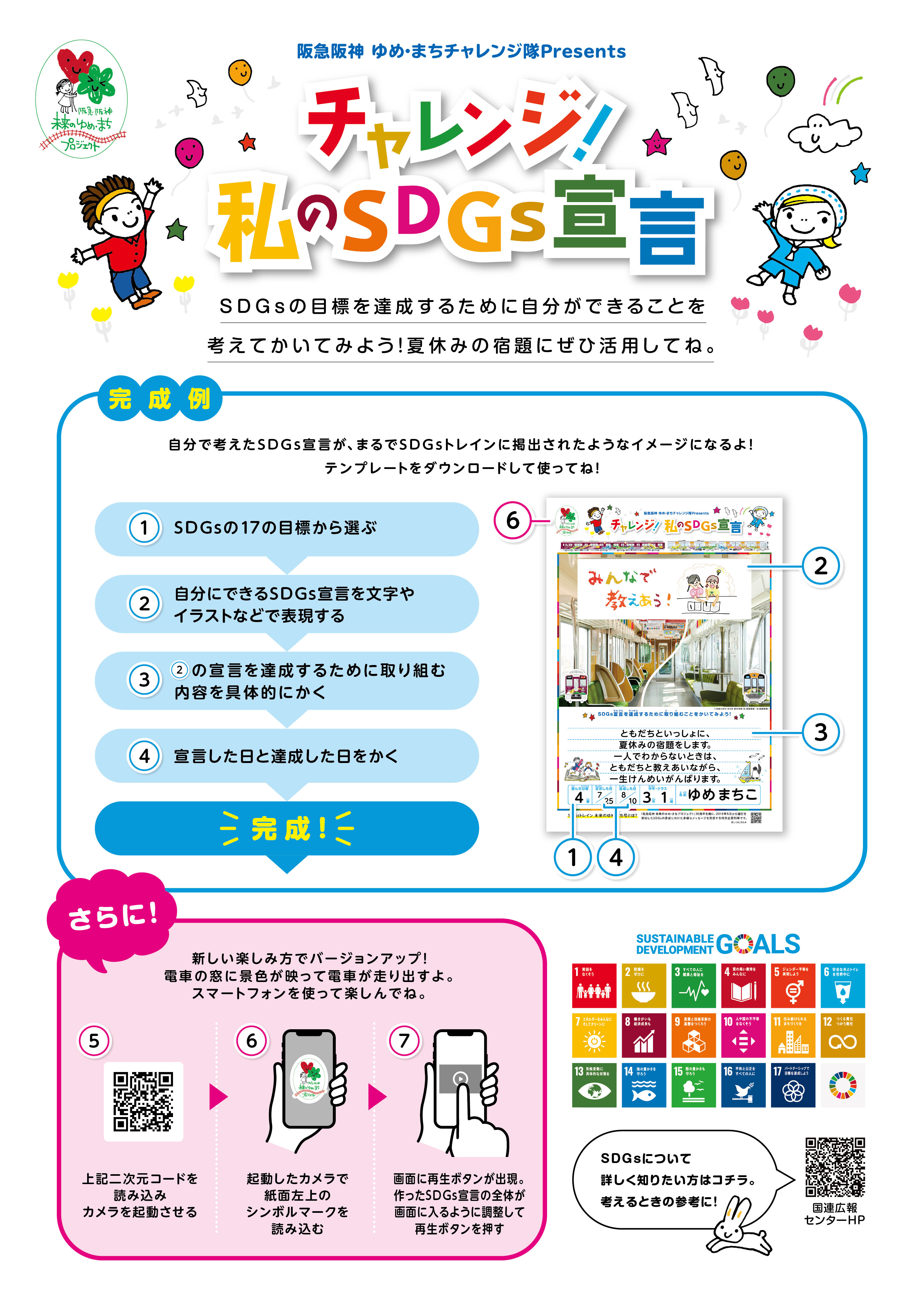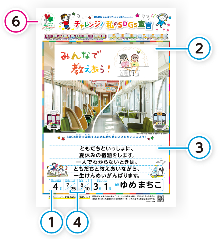 自分で考えたSDGs宣言が、まるでSDGsトレインに掲出されたようなイメージになるよ!テンプレートをダウンロードして使ってね!