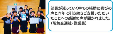 ■支援金使途:大会参加賞・消毒用アルコール購入費用 |