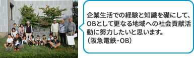 「兵庫県立やしろの森公園」を里山活動の場とし、活動内容を会報誌やHPなどで発信することで、環境意識の向上と交流推進を図っています。