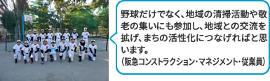 豊中市少年野球連盟所属し、青少年の健全育成から規律、礼儀、挨拶等を指導することを目的としています。