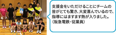 ■支援金使途:練習、試合会場使用料・用具等購入費用 |
