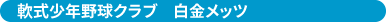 中学生の硬式野球チームです。友愛・団結・規律・勇気・忍耐の精神を身に付けるとともに、より高度な実践的技術の習得を目的としています。
