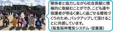 小学校・PTA・地域と連携して、「出来る事を、出来る人が、出来る時に」の精神でこども達が健やかに育つ環境づくりの活動を行っています。