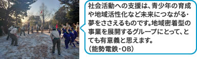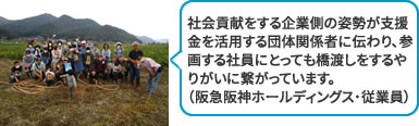 町おこし・町づくりを目的に、夏祭りへの出店・小中学校の運動場の草刈り・国道沿いの田んぼ植栽を行っています。