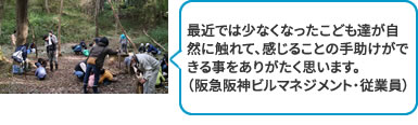 「兵庫県立やしろの森公園」を里山活動の場として、活動内容を会報誌やHPなどで発信することで、環境意識の向上と交流推進を図っています。