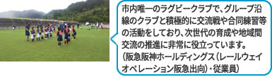 ラグビーを通じて、お互いに理解しあえるという「ふれあい」の精神を育み、社会に貢献できる人間として育成することを目的に活動しています。