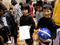 最後にミニゲームをしてクリニックは終了。1時間という時間は本当にあっという間に過ぎてしまいました。クリニックの後に設けられた選手とふれあう時間には、選手のサインをもらうためにこども達の長い行列ができていました。色紙だけでなく、ボールやシューズ、Tシャツにまでサインをしてもらいみんな笑顔に。感想を聞いてみると、「やっぱり近くで見ると、選手はすごく大きい」、「今野選手のファンだから、会えて良かった」と嬉しそう。中には、「エヴェッサの行うイベントに何度も参加しているんだ」という子も。プロバスケットボールの試合は、ケーブルテレビで配信されており、大阪のバスケ好きのこども達はそれを見て、毎日試合の結果を友達と話しているそうです。