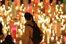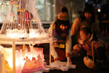 当日は、クリエイターと、そのたまご達が制作した光のアート作品がまちをほのかに照らすなか、しばし見とれる人やカメラを向ける人がたくさん・・・。動く仕掛けのある作品に興味をもったこどもと学生との交流など、微笑ましいシーンも見られました。ザ・リッツ・カールトン大阪の入口前で販売されている特製フードを買い求める姿や、キャンドル作品を撮影しながらゆっくりと歩む人々の穏やかな表情が印象的で、昼間の西梅田とはまったく別の顔を見るようです。