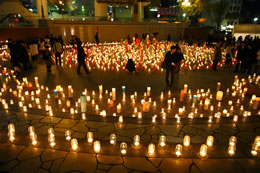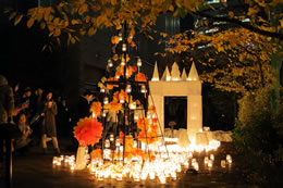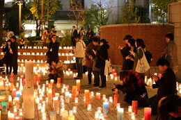 「1000000人のキャンドルナイト@OSAKA CITY」では夜6時から10時までキャンドルが灯され、夜8時には周辺の協力施設が電気の消灯を始めます。また、消灯に先立って、オリジナルキャンドルをつくるワークショップや野外ライブなど、毎回趣向を凝らしたプレイベントが各施設で行われます。