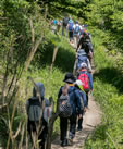 5月12日、「六甲ケーブルハイキング2018」の第2回、「六甲登山の定番とアルプス薫る高山植物園〜幻の青いケシの花、あざやかに〜」に参加してきました。吹く風は心地よく、空は青く澄みわたり、まさにハイキング日和。 集合場所の六甲ケーブル下駅には、ハイキング仲間、家族連れなどのハイカーが続々と集まり、にぎやかに談笑しています。受付を済ませ、説明を受けると、いざ出発! 住宅街を抜けて山道に入ると、階段、また階段……山歩きに慣れていない身にはなかなかキツイ勾配です。