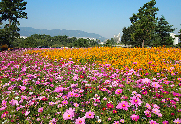 阪神・淡路大震災の発生以降、不法耕作や不法投棄で荒廃していた武庫川河川敷の環境を改善することを目的に、地域住民が中心となって設立した団体です。兵庫県や尼崎市と協働し、河川敷で大規模なコスモス園を開催しています。また、コスモス園開催に伴い、コスモスの種まきイベントや、開園直前の清掃活動を兼ねた花見会を実施し、地域住民がボランティアに参加することを通して、地域住民の交流の機会も提供しています。