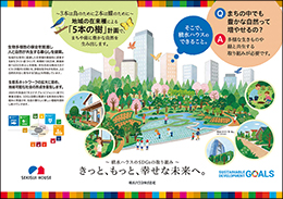 「SDGsトレイン 未来のゆめ・まち号」では、SDGsに関連した当社グループをはじめ国・沿線自治体および市民団体、協賛企業等と協力しあい、それぞれの取組を紹介する車内ポスターを掲出し、持続可能な世界をつくっていこうと考えています。
