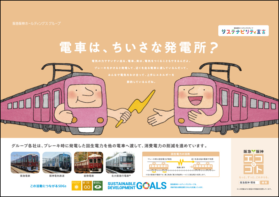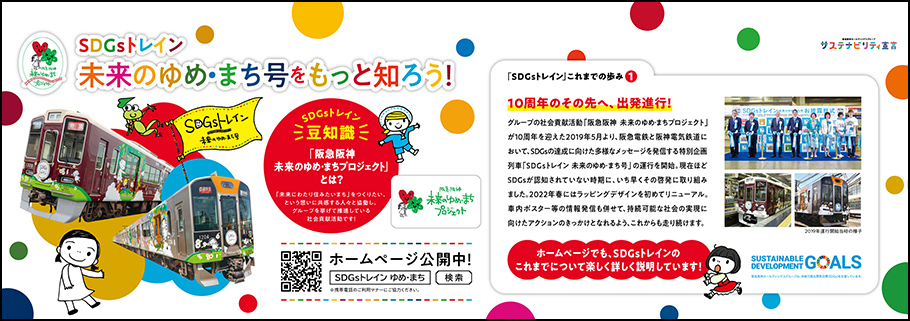 「SDGsトレイン 未来のゆめ・まち号」では、SDGsにかかわる当社グループをはじめ、国・自治体および市民団体、協賛企業等の取組を紹介する車内ポスターを掲出し、持続可能な世界の実現に向けた取組を紹介しています。