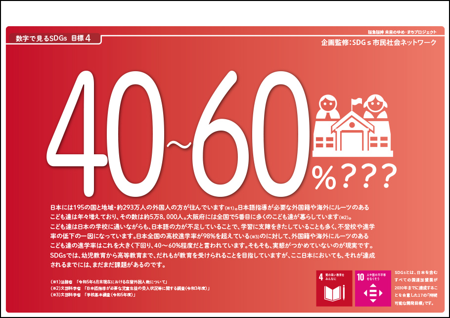 目標4 海外にルーツを持つこども達の進学率(日本人の約40~60%)