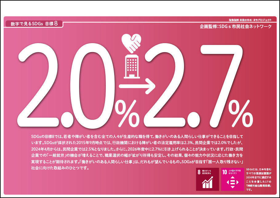 目標8 障がい者の法定雇用率(2.0%から2.7%へ引き上げ)