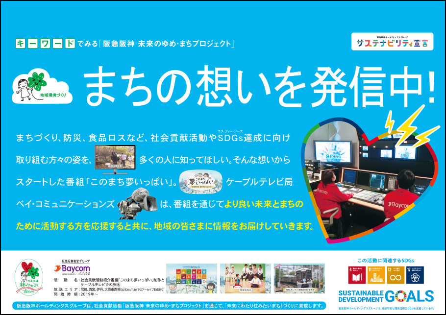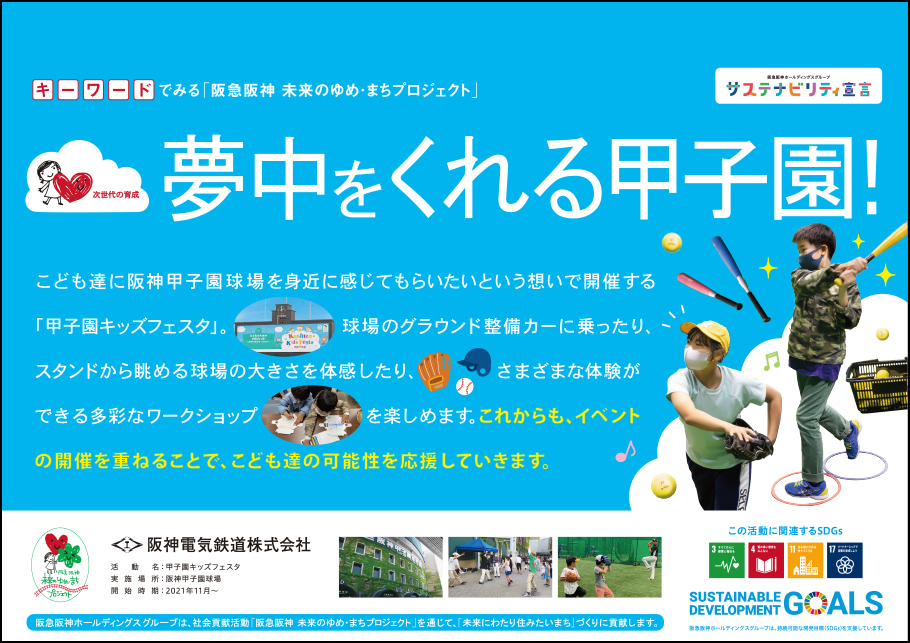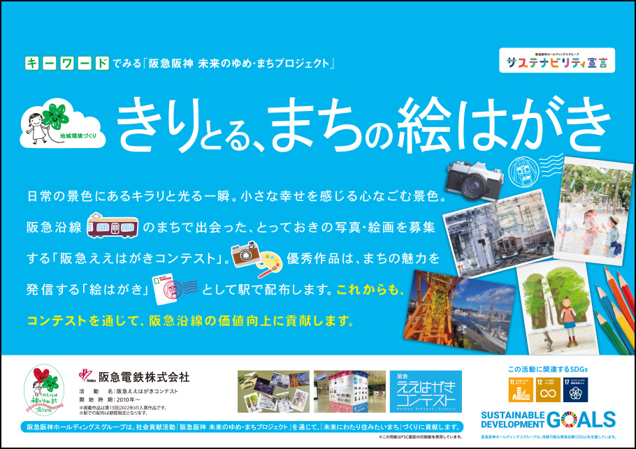阪急阪神 未来のゆめ・まちプロジェクトの活動を支援する企業のポスターを紹介します。